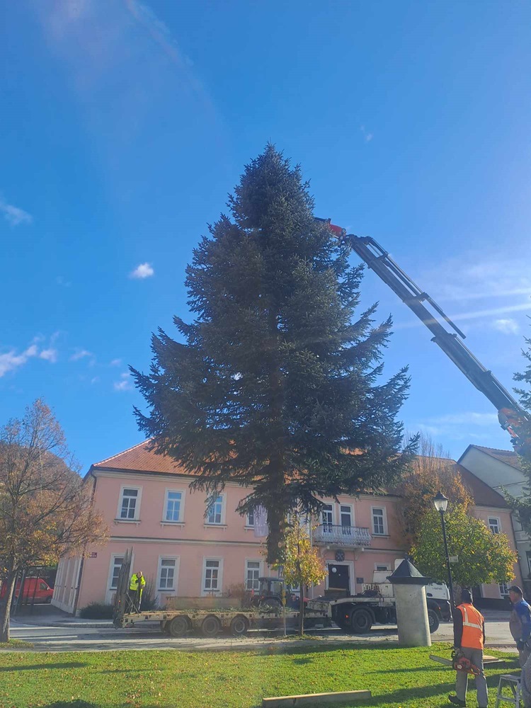 Da se priprave na veseli december počasi začenjajo, so z, za marsikoga prezgodnjim reklamiranjem opozorili že trgovci, da gre zares pa v Radečah zaznamo, ko se skozi mesto počasi pripelje tovornjak z velikim iglavcem na njem. Tako je v današnjem dopoldnevu (25. 11. 2023) potekala postavitev velike praznične srebrne jelke.