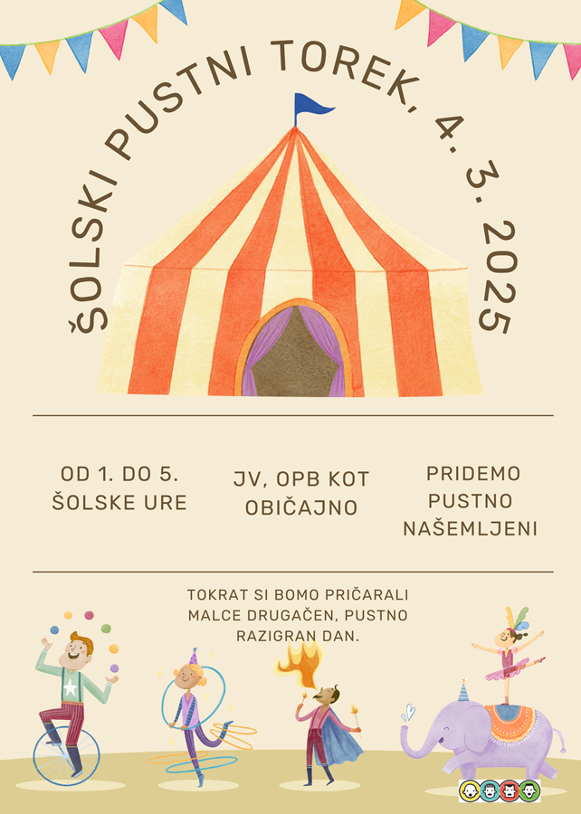 NA PUSTNI TOREK ZABAVNO TUDI V ŠOLI