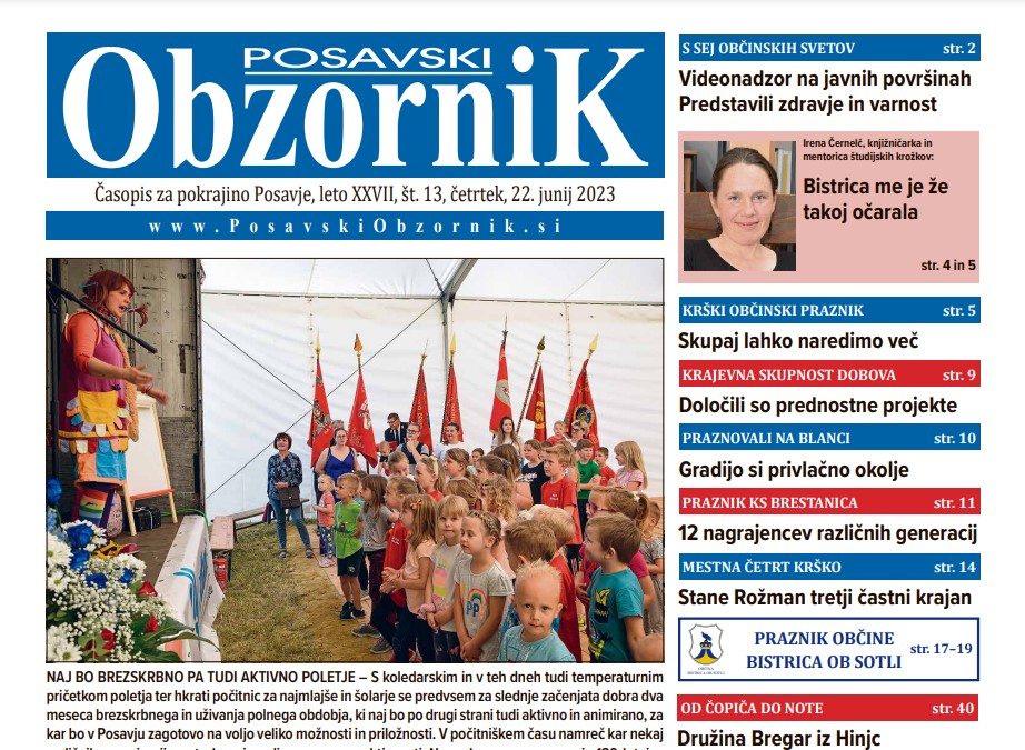 Danes je izšla 13. številka časopisa za regijo Posavje Posavski obzornik. V njem boste na strani 10 našli nekaj utrinkov s Splavarjenja 2023, ki se je odvijalo pretekli konec tedna in vabilo na Sonc festival, ki bo potekal od 29. junija do 2. julija ter zapis Smilje Radi na strani 32 prav o ustanoviteljici omenjenega festivala Tanji Sonc, ki pravi, da je violina njeno življenje.