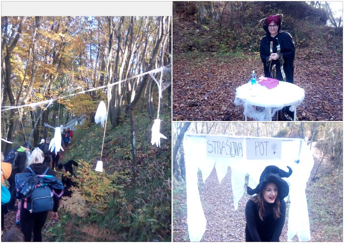 Pred vhodom skozi vrata, ki so vodila po strašljivi poti, je prijazna čarovnica Andreja v zameno za nekaj evrov povedala, kaj si bo lahko vsak otrok in spremljevalec na koncu poti privoščil. Ko se nas je nabrala lepa druščina, je s širokim nasmehom na obrazu prišla nasproti še ena čarovnica Lucija, ki je vsakega od otrok temeljito pogledala; pa ne zato, da bi preverila, ali bodo dobri za pod zob, ampak zato, da je lahko pohvalila njihove zanimive kostume in izvirne poslikave na obrazih.