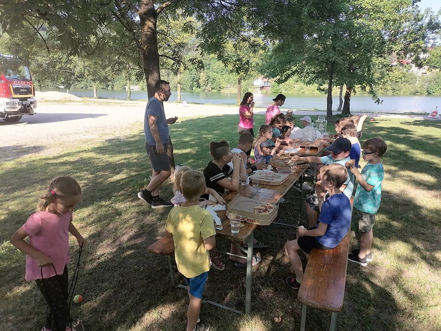 Prostovoljno gasilsko društvo Radeče je včeraj pripravilo še zadnje gasilske vaje, na katerih so se tekom celega leta od septembra pa do skoraj konca junija ob sredah srečevali mentorji gasilske mladine in gasilski podmladek. Gasilski krožek šolskega in vrtčevskega leta 2021/2022 je bil sklenjen v duhu zabave pri ribiškem domu Ribiške družine Radeče na Hotemežu.