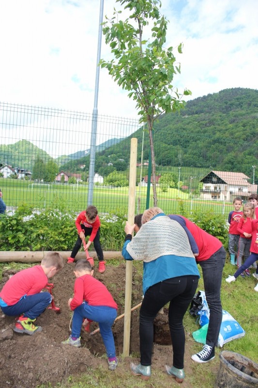 Nato so skupaj vanjo namestili japonsko češnjo, ki so mu jo z zemljo pomagali obložiti tudi člani skupine, katere vzgojitelj je. Okrasno drevo, ki bo lepšalo vrtčevsko igrišče z belimi cvetovi pa jih bo še leta in leta spominjalo na praznovanje rojstnega dne njihove maskote, punčke iz cunj, ki nosi ime vila Biba Čara.