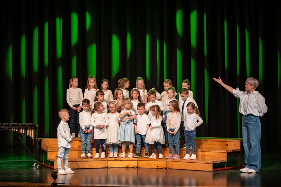 Pod vodstvom Mateje Pokeržnik so otroci na odru zažareli v vsej svoji iskrenosti in razigranosti. S svojimi glasovi, nasmehi in srčnostjo so ustvarili čudovito vzdušje, ki je ogrelo srca vseh prisotnih. Vsaka pesem je bila zapeta z občutkom in predanostjo, kot da bi želeli povedati nekaj prav posebnega – in to jim je tudi uspelo.