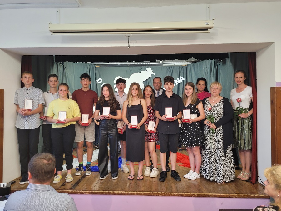 To so učenci, ki so letos pod vodstvom razredničarke Andreje Mitič Štirn zaključili 9.a: Nik Gorenjec, Gal Gros, Ana Kmetič, Aljaž Knez, Filip Pečečnik, Kaja Rainer in Anže Starina ter učenci, ki so letos pod vodstvom razredničarke Bojane Kovačič zaključili 9.b: Tija Bervar, Anže Brečko, Taja Keber, Julija Klavs, Samo Medved, Neža Stniša in Neža Vozelj. (Fotografija prejemnikov županovih petic: Občina Radeče)