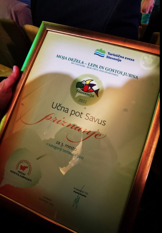 Med letošnjimi nagrajenci je bila v kategoriji "Tematske poti" tudi Učna pot Savus, ki je prejela priznanje za 3. mesto, medtem ko je zmagovalno priznanje prejela Pot med krošnjami Pohorje.