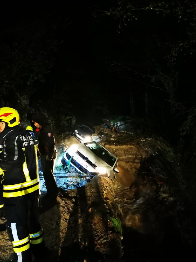 S tem pa dela še ni bilo konec. Sicer z območja sosednje občine Zagorje ob Savi je prišel klic na pomoč, saj sta se dva avtomobila znašla v središču zemeljskega plazu.