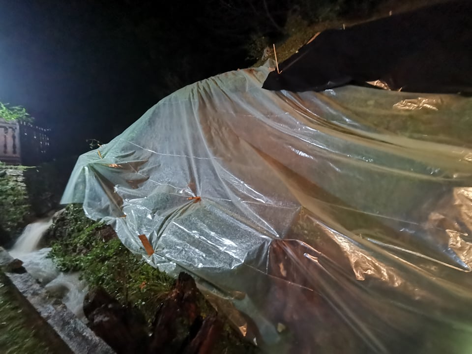 Operativni gasilci PGD Radeče so se nato vrnili v Starograjsko ulico. Tam je namreč gmota zemljine splazela v dolino in potrebna je bila sanacija. Gasilci so območje pokrili s folijo ter najbolj kritičen del tako zaščiti pred nadaljnjo prepojenostjo z vodo ob spremljajočem dežju.