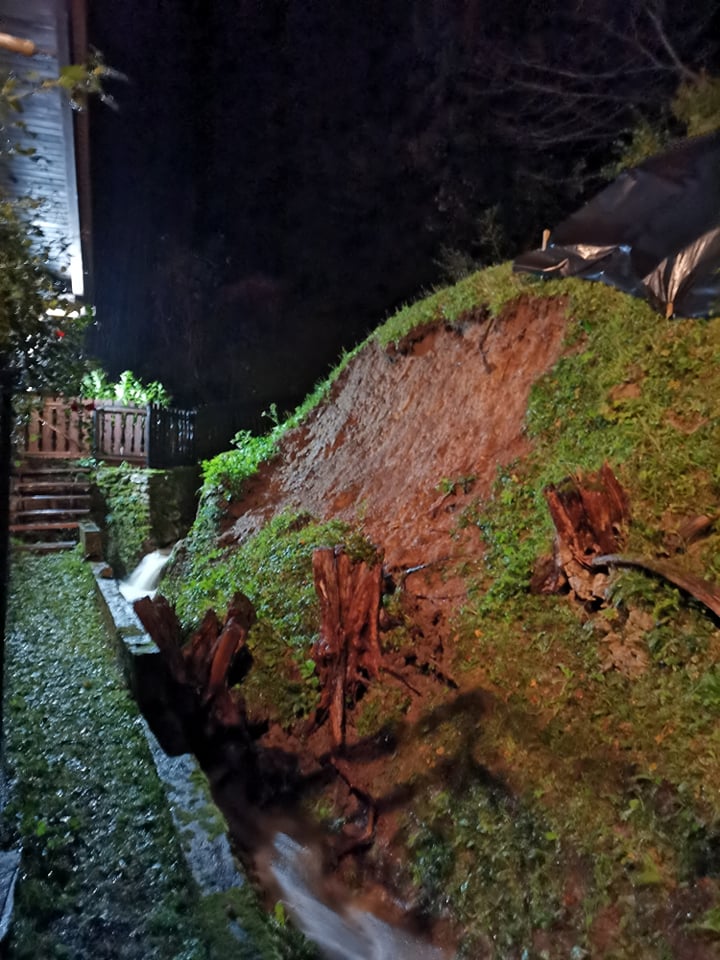Medtem se je pripetil še en klic na pomoč. V Starograjski ulici je sicer manjši potok, ki se izpod grajskega hriba steka v dolino, ob obilnih padavinah narasel, s seboj pa v strugi prinesel veliko gramoza, ob čemer je prišlo do zamašitve enega izmed propustov. Potok je tako našel svojo divjo pot preko vrta in skozi dvorišče ter dalje po cesti v bližini nekdanje zlatarne. Rokave so zavihali že domačini, ki priložnosti hudourniško naravo potočka poznajo že iz preteklosti, nato pa s skupnimi močmi z gasilci neljubi dogodek obvladali v tolikšni meri, da ni bil več ogrožujoč za njihove domove in premoženje.
