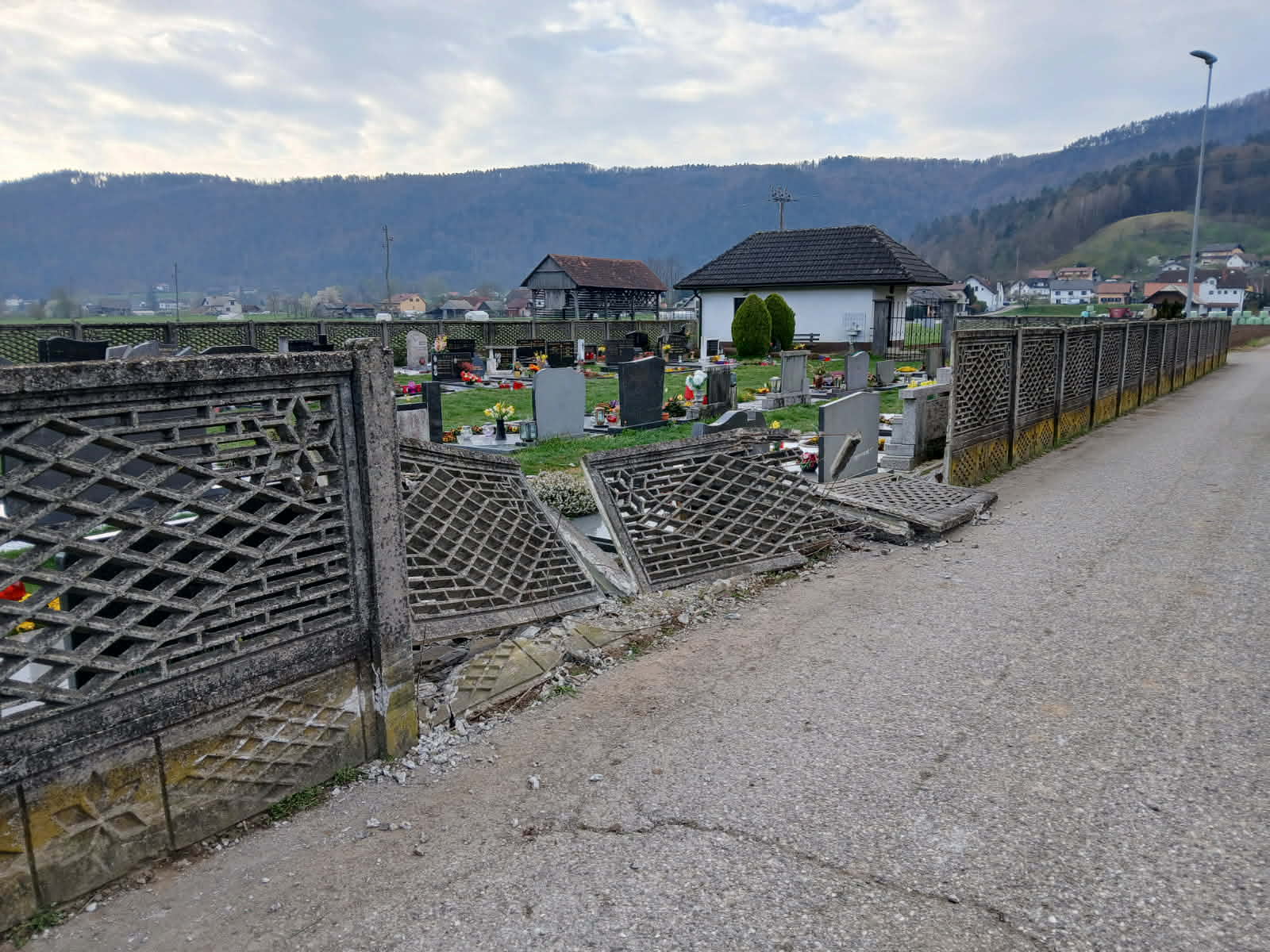 Prve jutranje sprehajalce po vrhovškem območju, ki se v mirnih urah radi zgodaj odpravijo sem ter tja po lokalni cesti, je danes zjutraj pri pokopališču v Vrhovem pričakal šokanten prizor. Tri polja betonsko-kovinske ograje, ki pokopališki del ločujejo od ceste ter zelenih površin, so nekatera podrta, nekatera nagnjena poškodovana kazila prej povsem običajno podobo. Po predvidevanjih je nekdo ponoči trčil v ograjo, nato pa poskrbel za odstranitev posledic in se meni nič tebi nič preprosto odstranil s kraja.