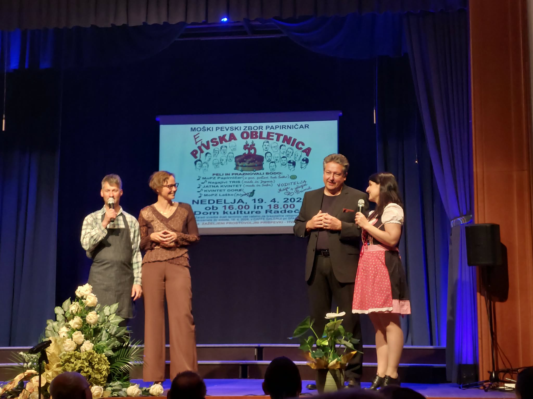 Na odru radeškega doma kulture so se MoPZ Papirničar Jagnjenica pridružili tudi njihovi prijatelji iz Moškega pevskega zbora Laško (zborovodja Dejan Jakšič), da je bilo poskrbljeno za smeh skozi posamezne točke, pa je s humornimi vložki in v njegovi značilni kmečki opravi poskrbel "užiguc" Primož Razboršek z njegovo nežnejšo polovico Majo Šturm Razboršek - skupaj sta napovedovala tudi ostale glasbenike, ki so pripomogli, da je bila obletnica pevcev pripravljena zares raznoliko in vsebinsko bogato.