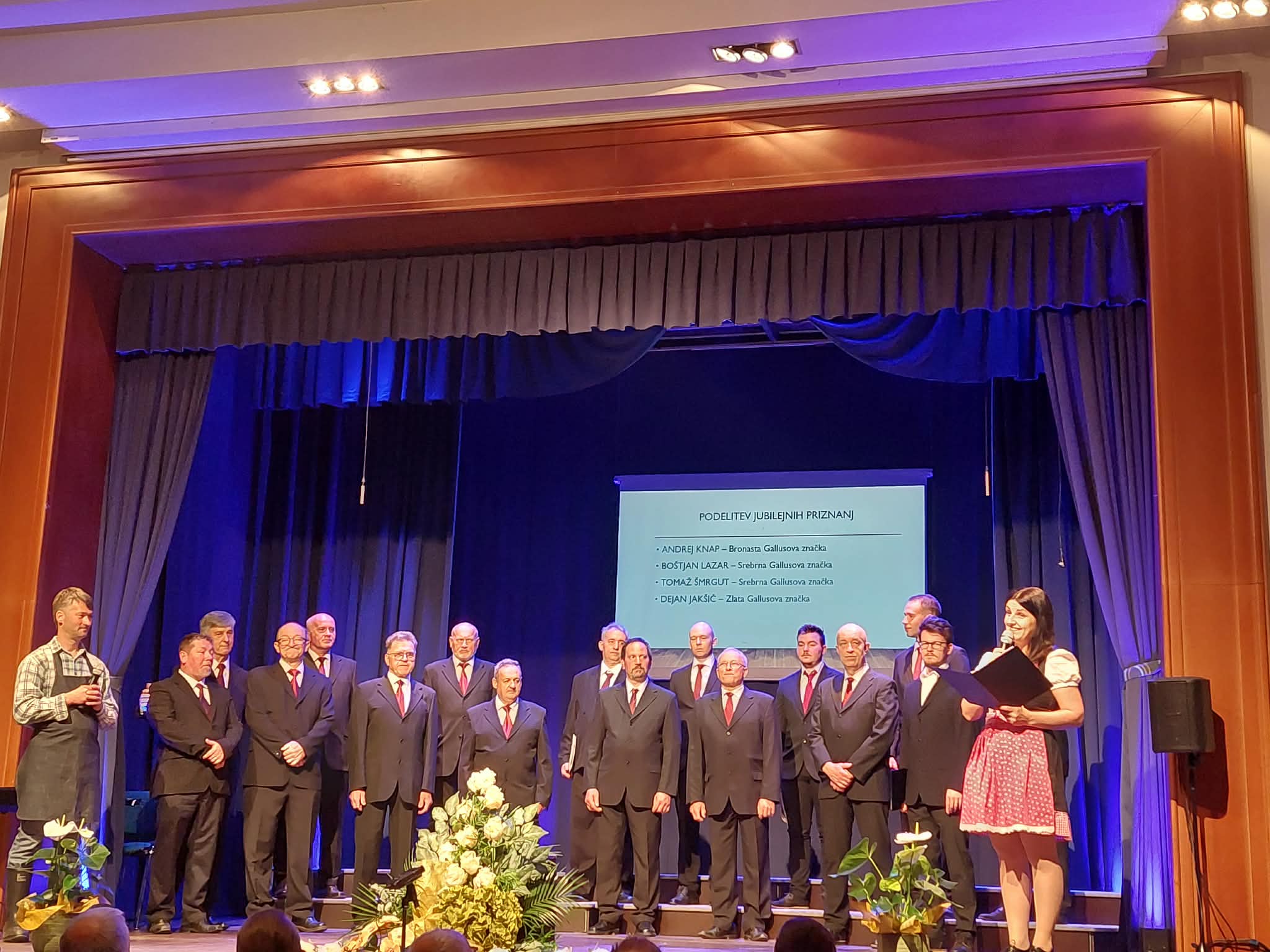 Javni sklad Republike Slovenije za kulturne dejavnosti namenja dolgoletnim aktivnim na pevskem področju posebno vrsto priznanja, imenovano Gallusova značka. Značke prejmejo člani zbora praviloma ob slavnostnih dogodkih, po predhodnem ugotavljanju koliko let je posamezen član že aktiven. Tokrat je bronasto prejel Andrej Knap, srebrna sta šli v roke Boštjanu Lazarju in Tomažu Šmrgutu, zlato Gallusovo značko pa je prejel zborovodja Dejan Jakšič.