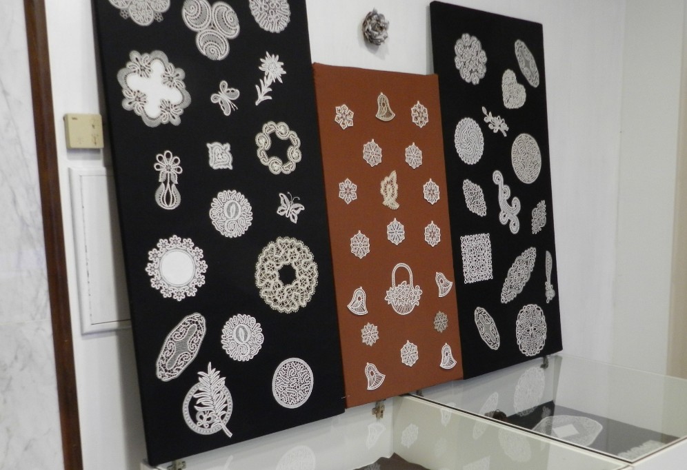 Razstavljena dela klekljarske skupine Nitke, ki so lansko leto praznovale 10-letnico, si je mogoče ogledate v času odprtosti knjižnice, in sicer