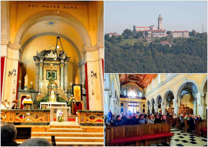Po sveti maši smo si ogledali notranjost cerkve, se pomudili ob kipu Marije Kraljice Svetogorske, nato pa uživali v razgledih s hriba – pogled se razprostira vse do Furlanije in Jadranskega morja.