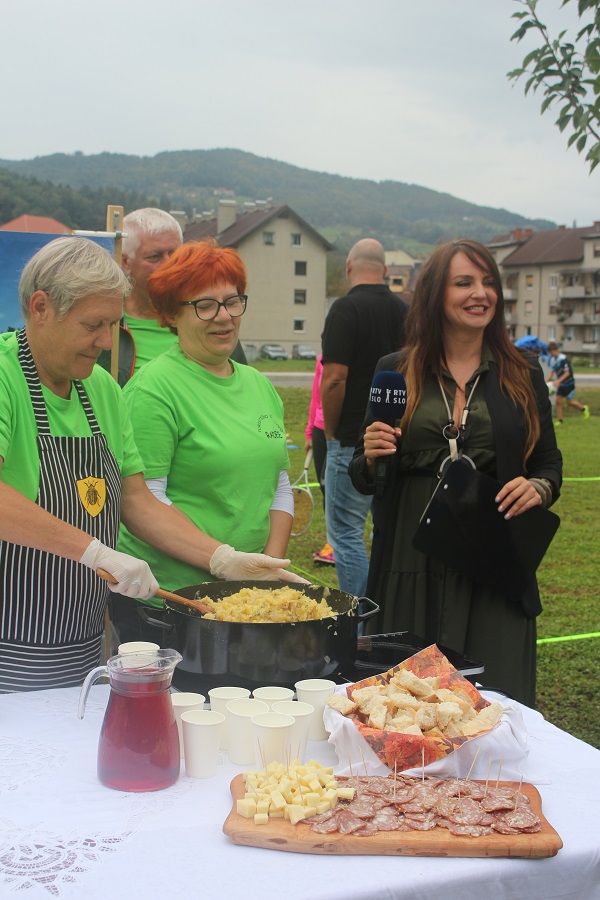 Pri drugem vklopu v živo s terena je nekaj trenutkov za predstavitev pripadlo tudi članom Turističnega društva Radeče, ki so najbolj znani po praženju krompirja.