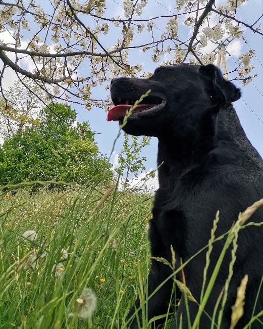 Fotografija, s katero se je predstavila na natečaju v organizaciji MDO PD Zasavje, je nastala med karanteno. "Z družino in našim hišnim ljubljenčkom Benom smo odšli na pohod proti Kumu. Posnetek je nastala čisto mimogrede, ko je kuža Ben sedel na travnik, ki je bil poln rož in cvetočih češenj."