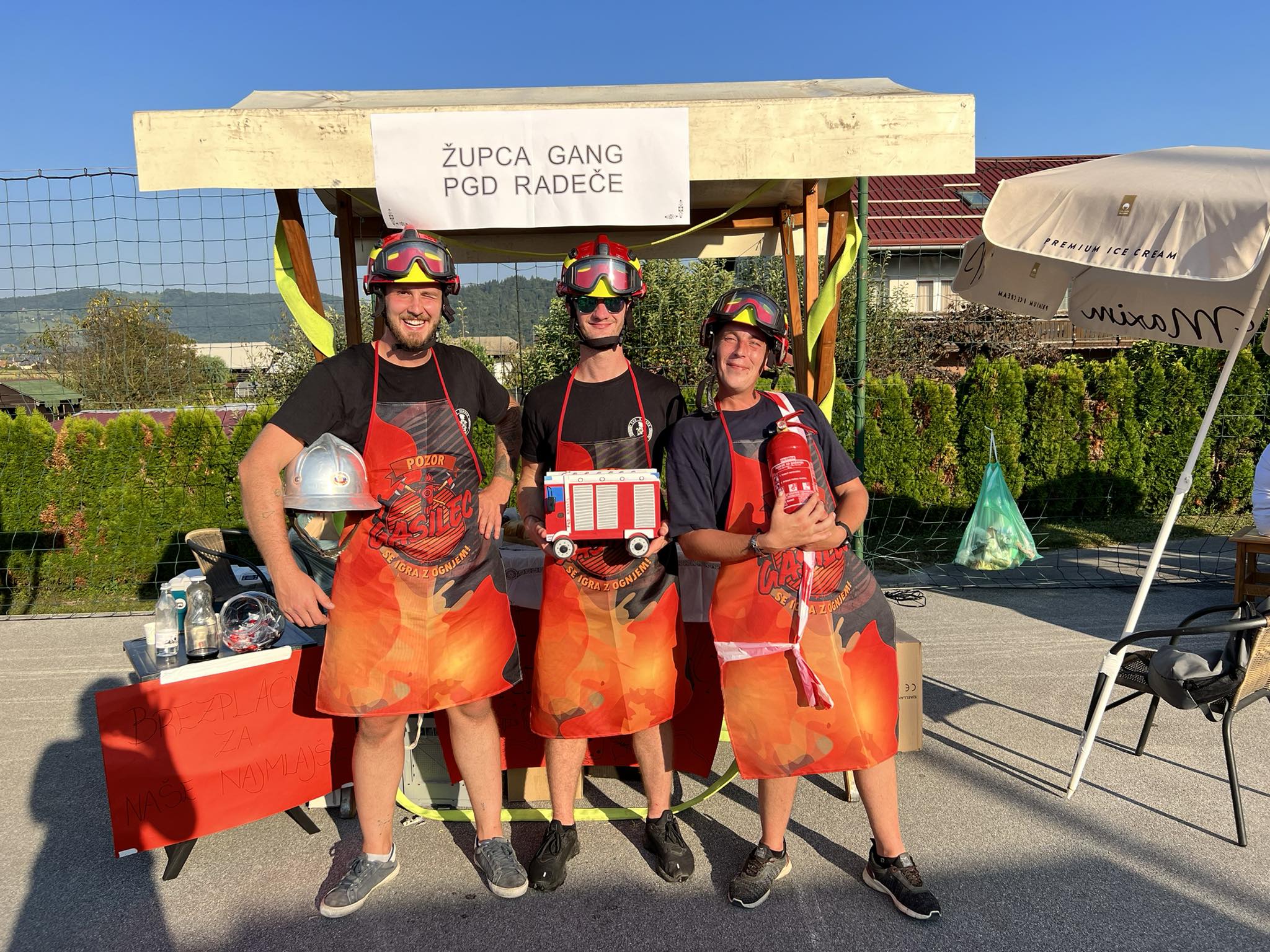 Aljaž, Jernej in Luka so poleg tega, da so se lotili kuharskega izziva, posebej veseli, da jim je uspelo storiti korak tudi v smeri promocije gasilstva. Ob pomoči Tamare Selevšek so namreč na svojo stojnico postavili preko 40 gasilskih cistern - igrač, ki so jih podarili otrokom, ki so se radovedno gibali po prizorišču od stojnice do stojnice.