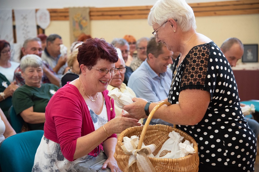 Ob koncu je vsako društvo prejelo zahvalo za sodelovanje in namesto pogosto podarjene rožice - vrečko z zelišči, to so s klekljanim izdelkom polepšale članice radeškega društva upokojencev in obenem klekljarice Nitke, za zdravja in omamnih vonjev polno vsebino pa je poskrbela Joža Novak s svojimi zelišči.