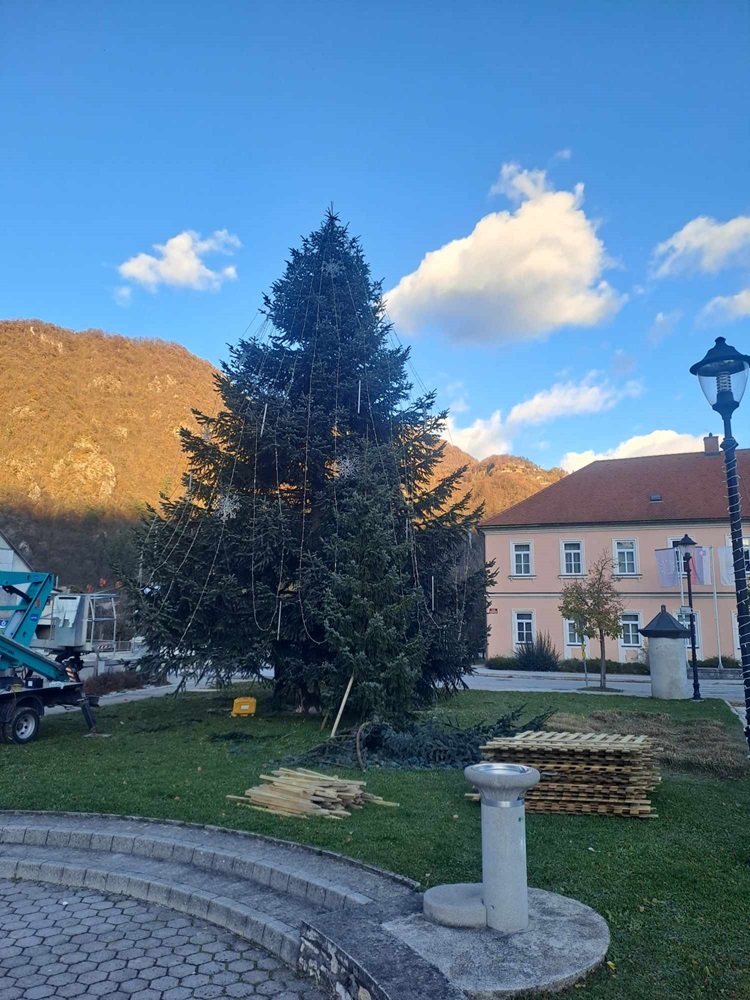 Da se priprave na veseli december počasi začenjajo, so z, za marsikoga prezgodnjim reklamiranjem opozorili že trgovci, da gre zares pa v Radečah zaznamo, ko se skozi mesto počasi pripelje tovornjak z velikim iglavcem na njem. Tako je v današnjem dopoldnevu (25. 11. 2023) potekala postavitev velike praznične srebrne jelke.