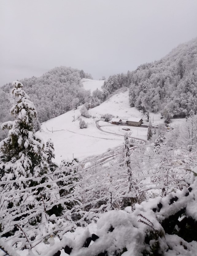 Po tem, ko je državo prešla hladna fronta z nalivi in vetrom ter izrazito ohladitvijo, smo se tudi v Radečah zbudili v belo nedeljsko jutro. Meja sneženja se je namreč zgolj v enem dnevu močno spustila - v soboto zvečer je bila temperaturna meja 0 stopinj Celzija na nadmorski višini okoli 2200 metrov, danes zjutraj je bila pod 700 metri nadmorske višine. V Radečah z okolico smo sicer prejeli zadnjo pošiljko snega pred današnjim že kar nekaj časa nazaj - pred dobrima dvema meseca. Današnji je drugi sneg v letu 2024.