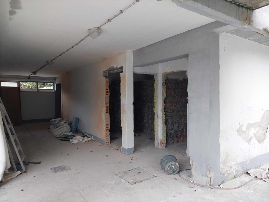 Povsem druga zgodba pa se odvija v zgornjem delu: ta se zaradi ocenjene predimenzioniranosti že preureja na dva dela. Spremembe v zgornjem delu zajemajo porušitev obstoječe nenosilne stene in postavitev nove, obenem pa se bo uredila kuhinja, sanitarije in tehnični prostor.