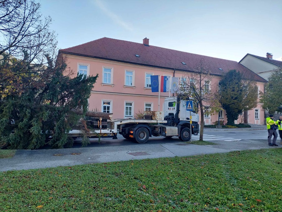 Smreko so zgodaj zjutraj podrli ob Titovi ulici (družina Mesar) in jo počasi prepeljali na parkirišče pri ploščadi nasproti občinske stavbe, glede na ocene sodelujočih meri približno 18 metrov. Ugotavljali so tudi, da je bila lanskoletna sicer nekoliko nižja, je pa imela bolj košato oblikovano krošnjo.