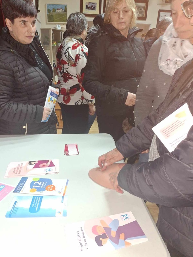 Udeleženke predavanja so na koncu lahko na modelu dojke tudi preizkusile, kako se otipajo oziroma vidijo spremembe na dojki, ki nas opomnijo, da potrebujemo strokovno pomoč.