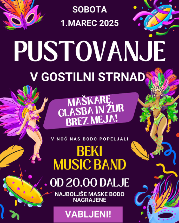 Po tem, ko se sobotno rajanje otroških mask, njihovih staršev in ostalih, ki poplesavajo po radeških ulicah in v notranjosti Doma PORP, pa že po tradiciji k pustovanju v večerno-nočnem času vabi Gostilna Strnad. Šeme bo zabaval DJ BEKI MUSIC BAND od 20. ure dalje.