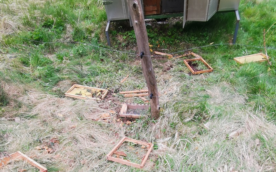 V noči z včerajšnjega na danšanji dan je na Počakovem znova robantil vsaj en medved. Privoščil si je panje, ki jih ima v svojem čebelnjaku Mojca Lazar, neljubemu dogodku pa je danes dopoldan sledil tudi ogled z ocenitvijo škode s strani Zavoda za gozdove Slovenije.