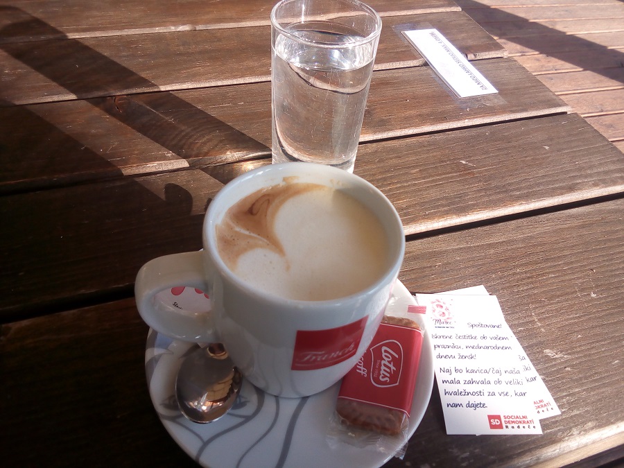 Ob današnjem odprtju gostinskih lokalov v jugovzhodnem in posavskem delu države, je bilo tudi povsod v Radečah živahno. Z dodatno piko na i sončnemu dnevu in vnovični možnosti pitja jutranje kave pa je ob dnevu žena za pripadnice nežnejšega spola poskrbela v Radečah vladajoča politična stranka, ki je gospodičnam in gospem namenila brezplačen topel napitek.