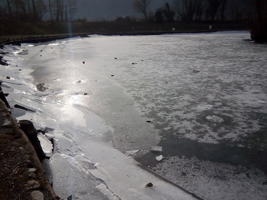 Toplejše temperature zraka zadnjih nekaj dni so tudi na hotemeškem bajerju povzročile spremembe na z ledom prekriti površini. Preden dežne kaplje in temperature nad ničlo povsem stalijo ledeno odejo na ribniku, imamo še priložnost občudovati ta del nedaleč od ribiškega doma na Hotemežu, s katerim postreže le zimski čas; kadar so seveda dovolj nizke dnevne in nočne temperature.