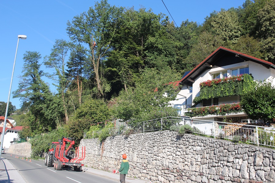 Na Titovi ulici so bile tekom celotnega včerajšnjega dne kratke zapore, ker so gledano v smeri proti Njivicam, na strmem pobočju ob stanovanjski hiši Suzić-Bervar izvajali posek nevarnih dreves.