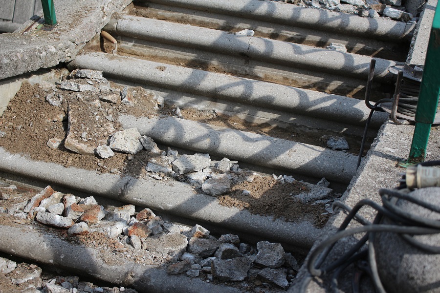 Delavci javnega podjetja Komunala Radeče so z današnjim dnem začeli z odstranjevanjem zgornje plasti stopnic, odstranjena bo tudi dotrajana ograja, nato pa bodo površino preplastili in namestili novo varovalno ograjo.