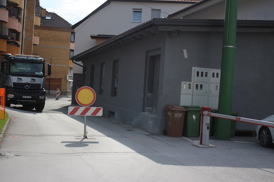Danes so se začela prva dela v okviru rekonstrukcije parkirišča, s čimer je del javne poti okrog stanovanjskih blokov za radeško poslovalnico Abanke neprevozen.