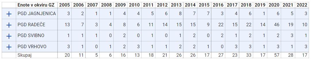 V radeški občini so gasilci v zadnjih letih takole priskočili soobčanom v stiski na pomoč; samo v prvih štirih mesecih tega leta so se odzvali ob klicu na 112 17-krat, sicer pa v povprečju vsa štiri društva (PGD Vrhovo, PGD Jagnjenica, PGD Radeče in PGD Svibno) letno odhitijo 30-krat na pomoč.