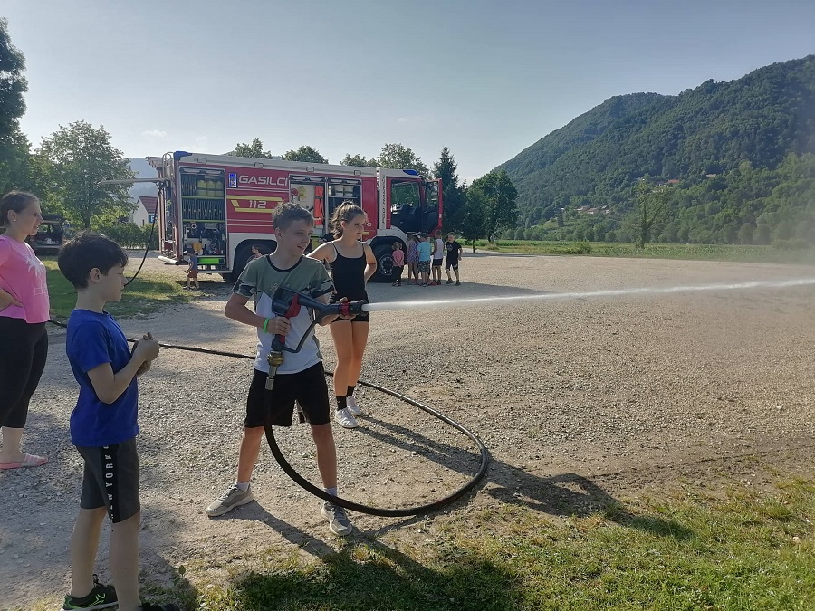 S hitro cevjo se je lahko vsak tudi preizkusil v usmerjanju vodnega curka, kar je ob pršenju naokrog zaradi vetra vsem prijalo ob vročem popoldnevu.