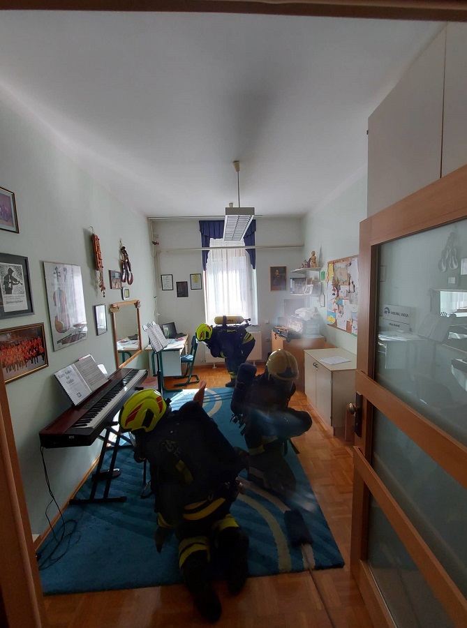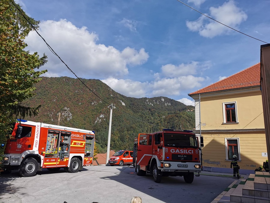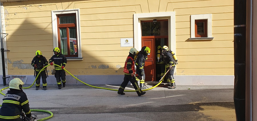 Minuli petek je ob 14.30 zagorelo je v radeški enoti Glasbene šole Laško-Radeče, ob čemer je stekla evakuacija 19 učencev in osmih učiteljev na varno, predpisano zborno mesto, ujetega učitelja, ki je poskusil izklopiti elektriko, pa so gasilci rešili iz zbornice ter ga oskrbeli. Opisan dogodek se je zgodil načrtovano, v sklopu vaje, ki so jo v sodelovanju izvedli operativni gasilci PGD Radeče in GŠ Laško-Radeče.