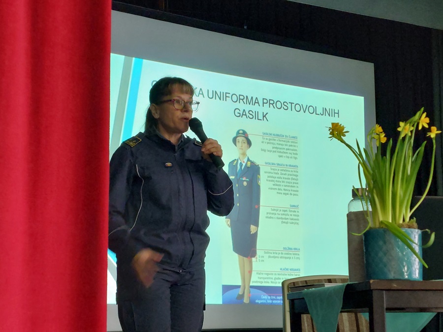 Sledilo je predavanje predavateljice, publicistke, pisateljice in humanitarke Vlaste Nussdorfer, ki je uvodoma čestitala gasilkam: “Čestitke, drage ženske, da zmorete narediti veliko dobrega, posebej, ker kljub temu, da pogosto delujete v težkih razmerah, v kotičku misli nosite tudi misli na dom in družino ter skrb zanje, za kar vam osebno izrekam še posebno priznanje.”