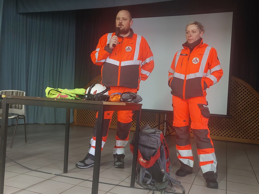 Okrepčale smo se še z okusno enolončnico, ki so jo pripravile gostiteljice, nakar pa so se nam posvetili pripadniki Kinološkega društva Zgornjesavinjske doline, ki so del Enote reševalnih psov Slovenije ter obenem tudi v sistemu sil zaščite in reševanja.