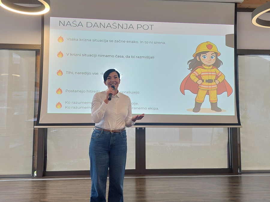 V nadaljevanju se je dan odvijal skozi šest strokovnih krajših predavanj: Odnosi in komunikacija v kriznih situacijah (Elvisa Suhonič), skozi predstavljeno analizo nam je požar v Dijaškem domu Ivana Cankarja (Poljanska ul., Ljubljana) približal Klemen Zupančič, ki je bil januarja letos vodja te intervencije, o svojih doživljanjih pa iz prve roke pripovedovala ena od stanovalk doma, dijakinja Manca Peternelj. Kako dobrodošlo je pri nadaljnji obravnavi določenega strokovnega področja izhajati iz osnovne literature z opisi in definicijami je dr. Mateja Jemec Tomazin nizala podrobnosti iz projekta nastajanja in tudi same realizacije knjige Gasilski terminološki slovar. Kakor se je pojavila že praktično v vseh sferah, tudi naša skupna interesna in humanitarna dejavnost ni nobena izjema in tako se umetna inteligenca vse močneje (tudi lahko zelo koristno) pojavlja tudi v gasilstvu - kako je lahko uporabna, je predstavil Miha Jančar.
