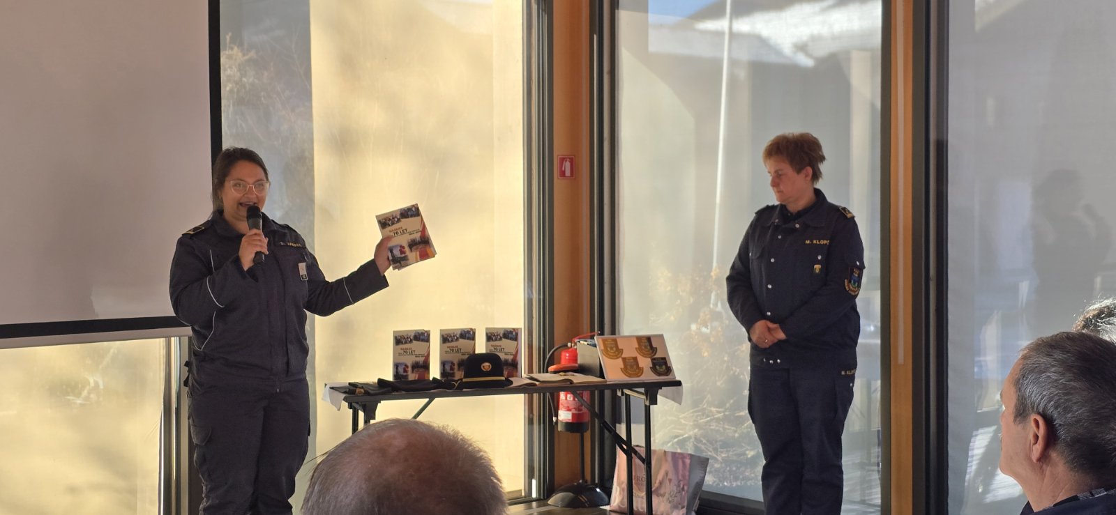 Sledila je kratka predstavitev monografije Gasilke skozi 70 let delovanja Gasilske zveze Trbovlje, ki sva jo, še toplo izpod tiskarskih strojev teden dni pred uradno prvo predstavitvijo v zasavskih revirjih in izdano v samozaložbi, predstavili avtorici Doroteja Jazbec in Magda Klopčič, kot enega od vzorčnih primerov, kako lahko ženske s svojimi talenti, veščinami in skrbnostjo na področju ohranjanja gasilske dediščine, v svojih domačih vrstah poskrbimo, da bo zares širokoplastno delo gasilk zabeleženo in trajno arhivirano - v papirni obliki.