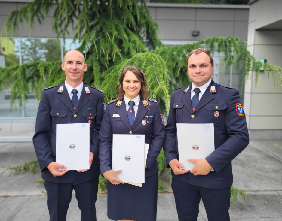 Gasilska zveza Slovenije je v sodelovanju z Občino Majšperk in Gasilsko zvezo Majšperk pred tednom dni v tamkajšnjem kulturnem centruorganizirala slavnostno podelitev napredovanj v čine gasilski častnik, višji gasilski častnik in visoki gasilski častnik. Po polletnem usposabljanju s teoretičnega in praktičnega vidika je tudi Gasilska zveza Radeče bogatejša za dva gasilska častnika, ki sta od 21. junija tudi z uradno listino Janez (Jano) Sonc in Doroteja Jazbec - na fotografiji z Gorazdom Kunškom iz PGD Jurklošter.