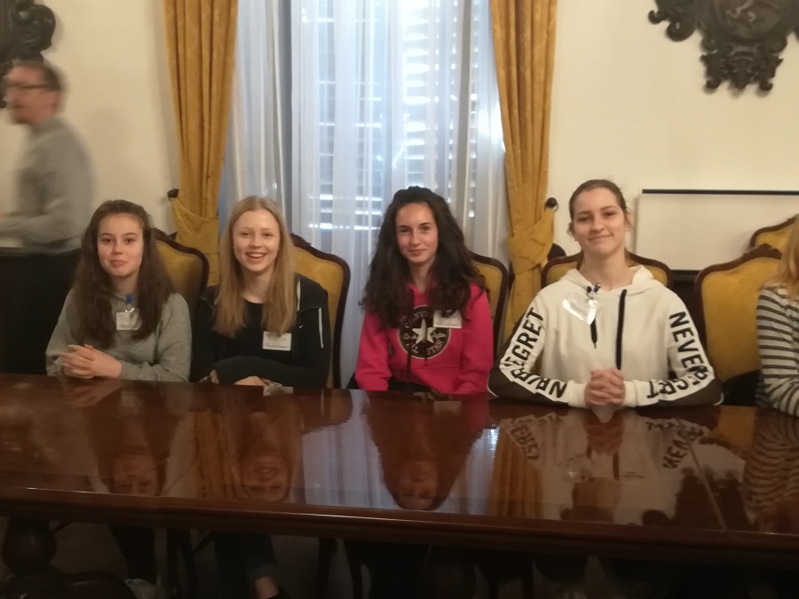 Udeleženke OŠ Radeče na Medobčinskem 29. otroškem parlamentu (15. marec 2019, Grad Sevnica)