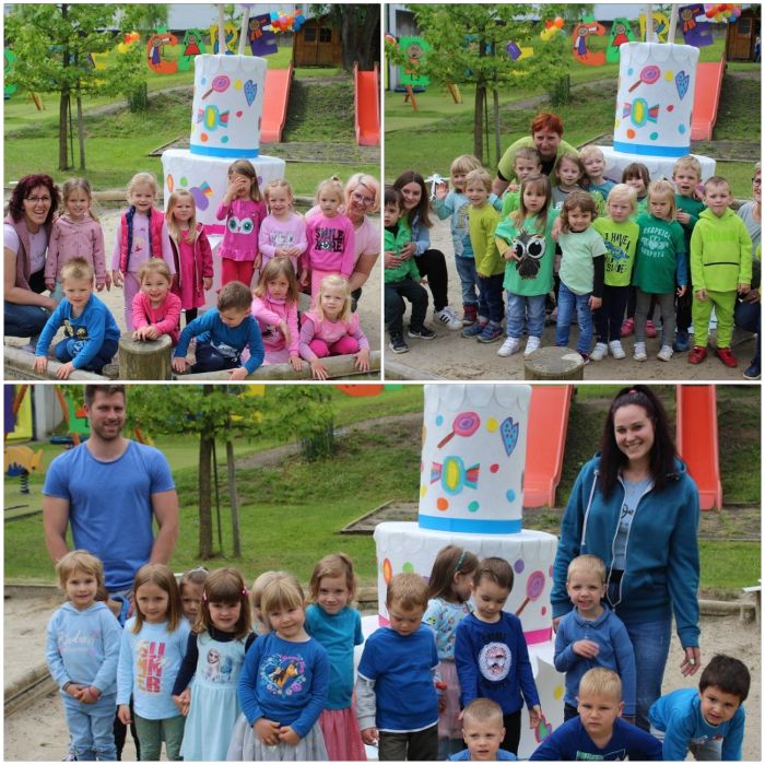 Neizogibno je bilo seveda tudi spominsko fotografiranje pri rojstnodnevni torti, postavljeni na sredino peskovnika, ki jim bo skozi podobe veselih obrazov vzbujala lepe spomine čez leta, ko bodo vrtečani postali učenci, dijaki in kasneje odrasli ljudje, ter tudi strokovnim delavcem, ki radeški vrtec doživljajo kot svoj drugi dom in prav posebne vrsto družine, v kateri prevladujejo smeh, dobra volja in lepi trenutki.