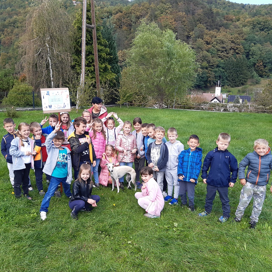Torek je bil za nas poseben dan. Prvošolci so skupaj s psičko Čiko pred šolo mimoidočim oznanjali svetovni dan varstva živali in podarjali pasje objeme.