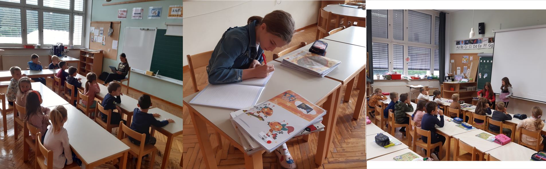 - Zarja in Ema so postale "učiteljice za en dan". S prvošolci so prebirale pravljice.
