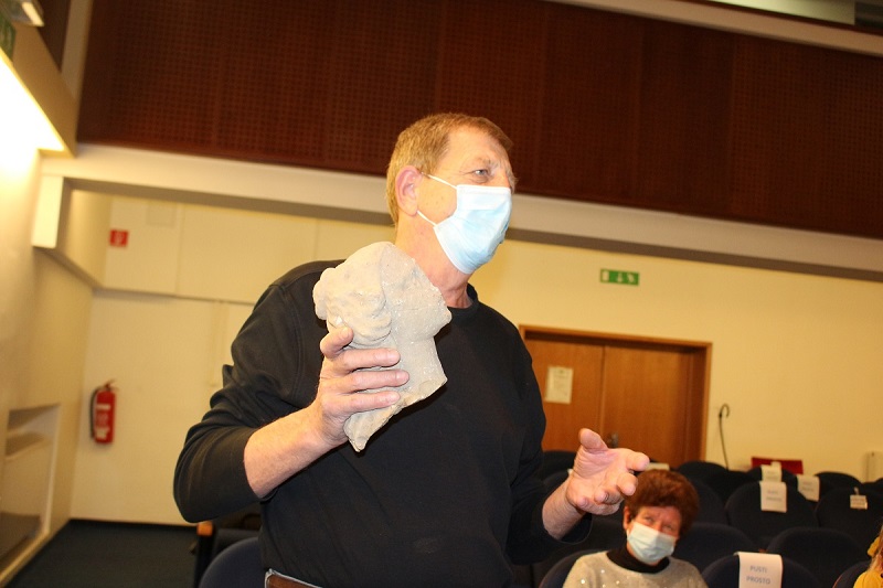 "Nekaj sem prinesel, kar menda nihče od vas še ni nikdar videl, pa ni moje, je pa naše - od občanov in občank Radeč," je začel pripovedovati Dušan Podlesnik, dolgoletni občinski svetnik in predsednik Krajevne skupnosti Radeče, medtem, ko je pod njegovimi rokami šelestela vrečka. Nato pa je iz nje potegnil - glavo!