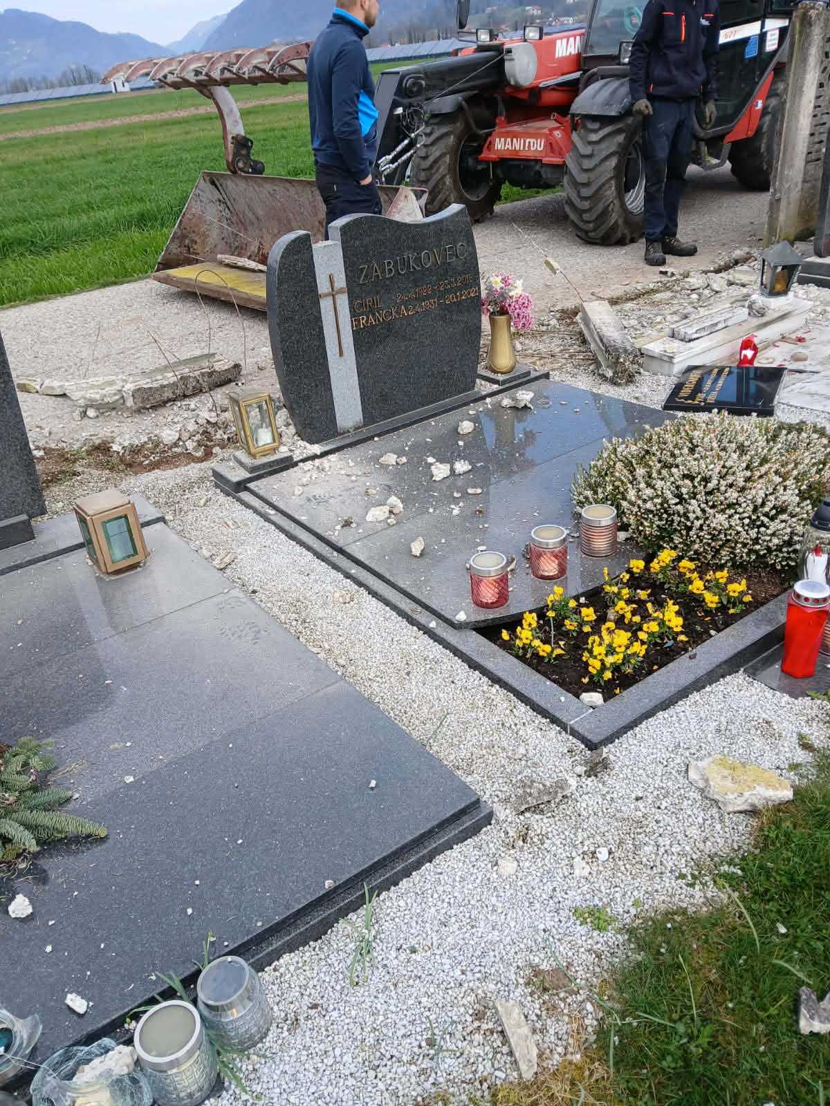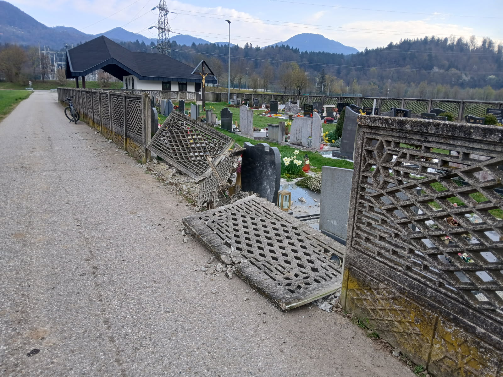 Prve jutranje sprehajalce po vrhovškem območju, ki se v mirnih urah radi zgodaj odpravijo sem ter tja po lokalni cesti, je danes zjutraj pri pokopališču v Vrhovem pričakal šokanten prizor. Tri polja betonsko-kovinske ograje, ki pokopališki del ločujejo od ceste ter zelenih površin, so nekatera podrta, nekatera nagnjena poškodovana kazila prej povsem običajno podobo. Po predvidevanjih je nekdo ponoči trčil v ograjo, nato pa poskrbel za odstranitev posledic in se meni nič tebi nič preprosto odstranil s kraja.