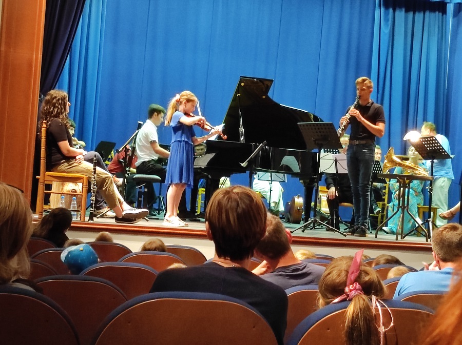Na koncu matineje Sončni vrtiljak se je akademskim glasbenikom na odru pridružila še zlasti na področju komponiranja obetavna Klara Mlakar in tako je bil cel orkester navzoč in aktiven zaigrali in navdušili so z belokranjsko narodno skladbo.