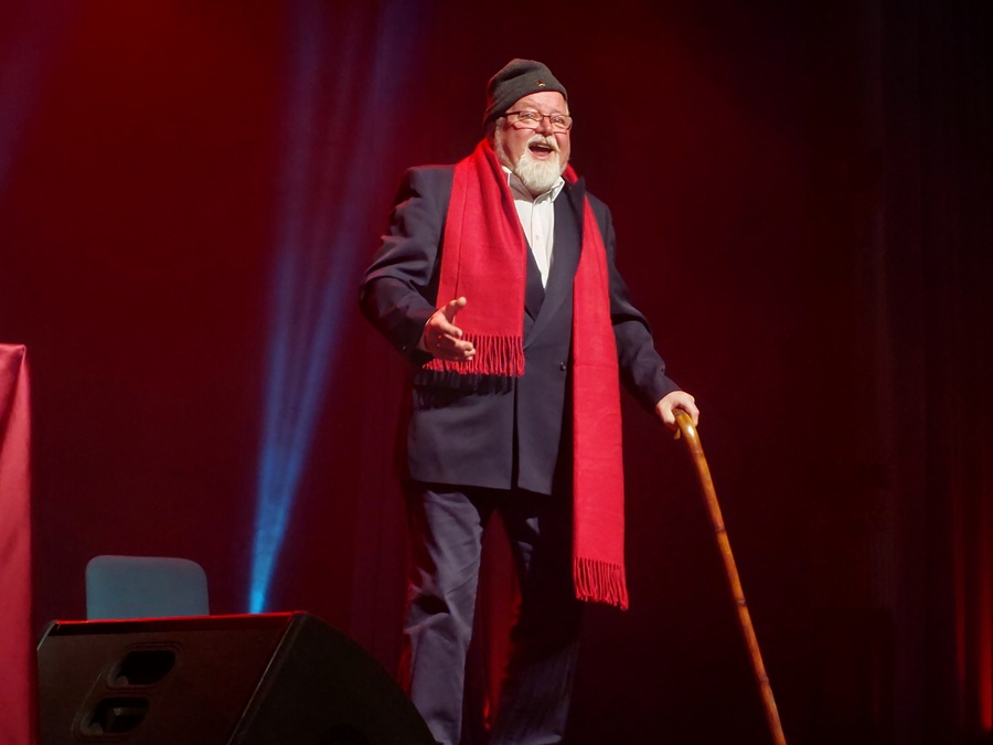 Franc Gros je v podobi veselega Jokija, ljubitelja rdečega vinca, nasmejal občinstvo s pristnim domačim humorjem.