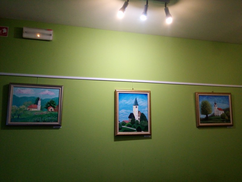 Ob ogledu razstavljenih slik vam ne bo ušla ena skupna rdeča nit, to so cerkve - med enajstimi, kolikor jih je v naši občini in sosednji hrastniški (Podkraj; spada pod Župnijo Radeče), so jih naslikali devet - izpustili so le čimerjansko in vrhovško, ker sta le-ti že bili predmet razstav v preteklosti.